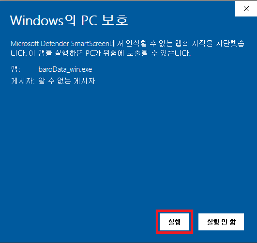 4) 'baroData_win'파일을 실행시켜줍니다.