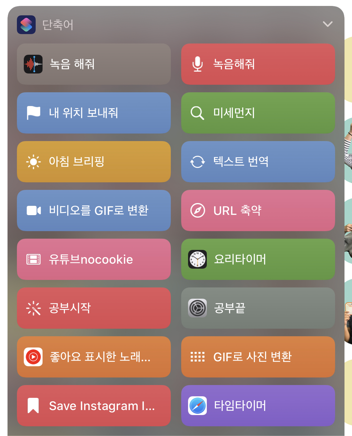비디오를 GIF로 한 번에 변환해주는 단축어 등이 있습니다.