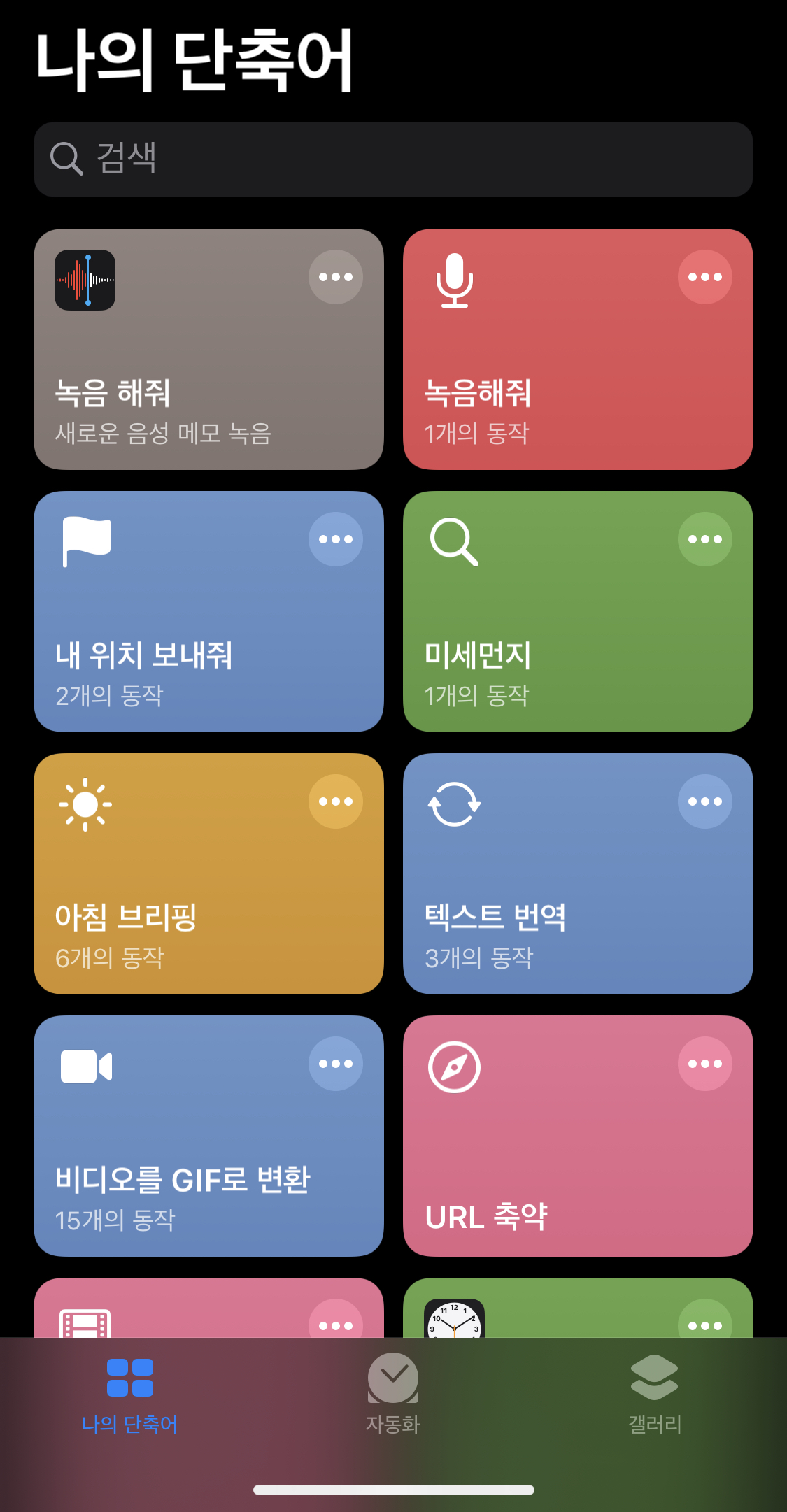 단축어 갤러리에는 바로 등록해서 사용할 수 있는 단축어들이 많이 만들어져 있습니다.