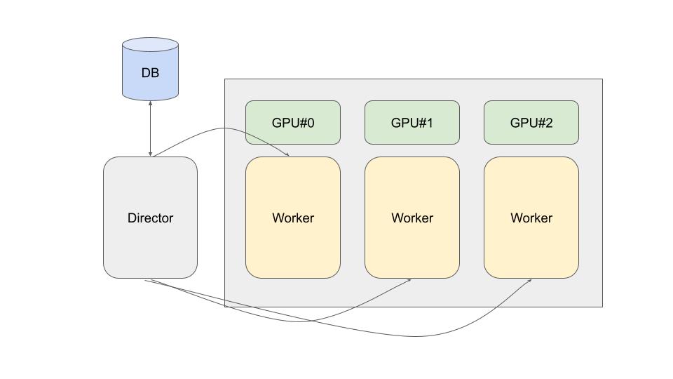 감독이 1) 처리할 아이템이 있는지 확인하고, 2) 대기중인 GPU가 있다면, 3) Worker를 생성해서 해당 아이템을 처리하도록 한다.